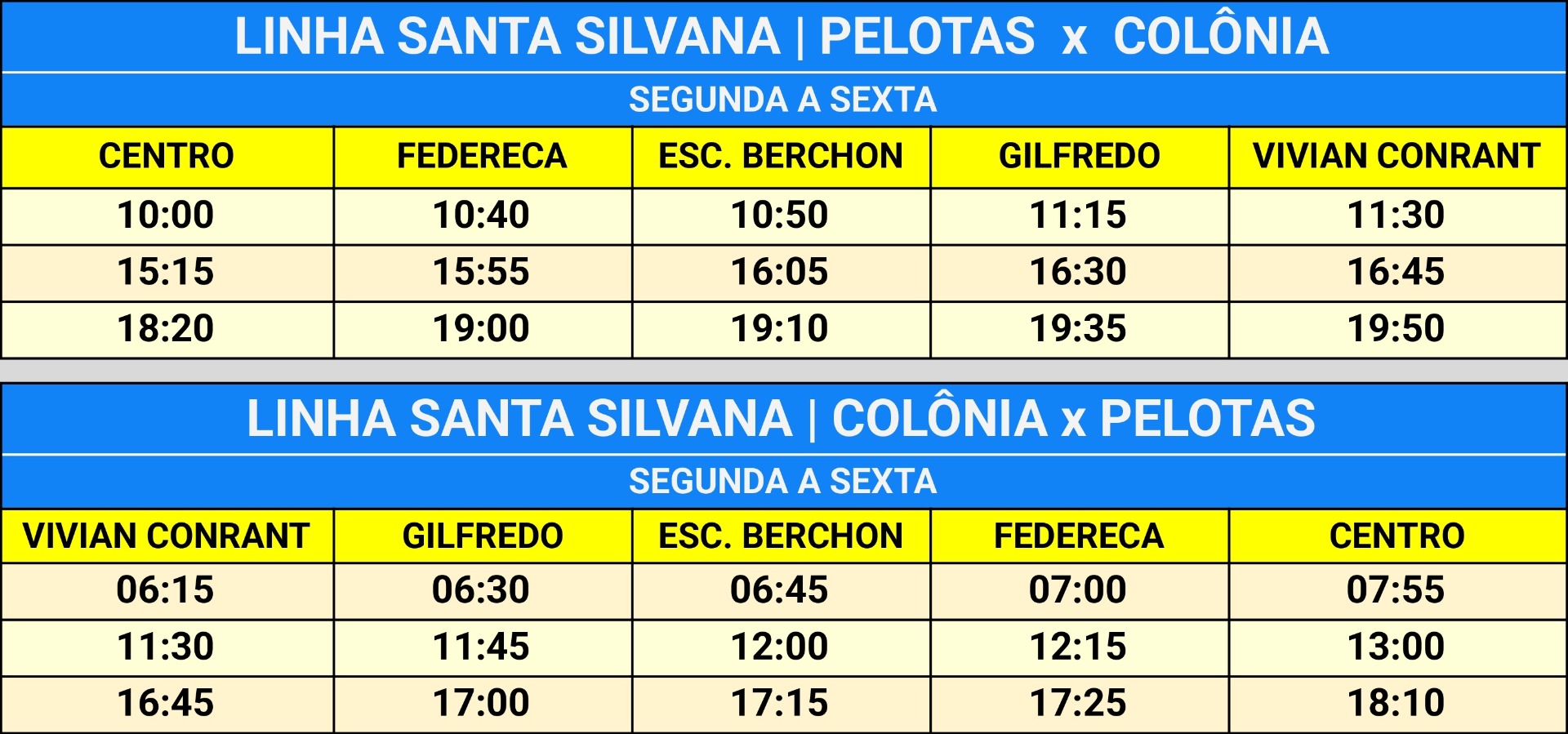 HORÁRIOS DA LINHA